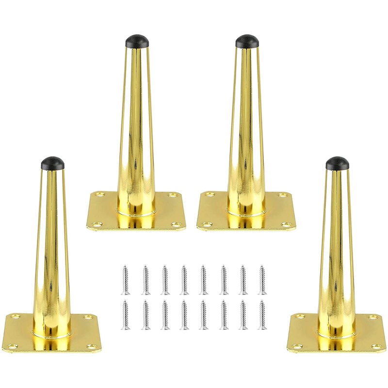 Contenuto della confezione: 4 gambe affusolate per mobili e 16 viti sono incluse nella confezione. L'altezza di ciascuno è di 15 cm e la dimensione della piastra di montaggio è di 8×8 cm. Alta qualità: Questa gamba per mobili è realizzata in ferro di alta qualità. La superficie è verniciata, antiruggine, resistente e facile da pulire. Design antiscivolo: I cuscinetti rotondi in gomma antiscivolo sono posizionati sotto le gambe del mobile. Può prevenire efficacemente di graffiare il pavimento o fare rumore durante lo spostamento. Facile da installare: Questa nostra gamba da tavolo ha un design monoblocco. Ti aiuta a sostituire le gambe dei mobili in modo facile e veloce. Ampiamente usato: La finitura oro può essere facilmente integrata in diversi stili di interni. Può essere utilizzato per mobili come armadi, sedie o letti.
