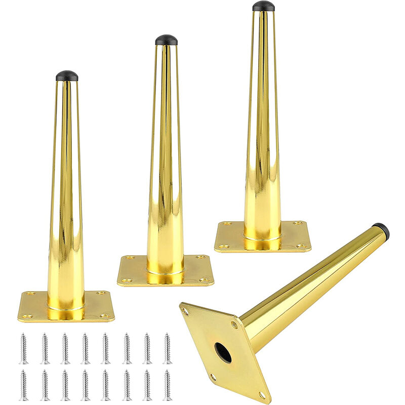 Contenuto della confezione: 4 gambe affusolate per mobili e 16 viti sono incluse nella confezione. L'altezza di ciascuno è di 17 cm e la dimensione della piastra di montaggio è di 8×8 cm. Alta qualità: Questa gamba per mobili è realizzata in ferro di alta qualità. La superficie è verniciata, antiruggine, resistente e facile da pulire. Design antiscivolo: I cuscinetti rotondi in gomma antiscivolo sono posizionati sotto le gambe del mobile. Può prevenire efficacemente di graffiare il pavimento o fare rumore durante lo spostamento. Facile da installare: Questa nostra gamba da tavolo ha un design monoblocco. Ti aiuta a sostituire le gambe dei mobili in modo facile e veloce. Ampiamente usato: La finitura oro può essere facilmente integrata in diversi stili di interni. Può essere utilizzato per mobili come armadi, sedie o letti.