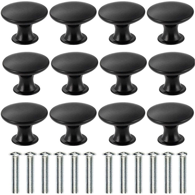 Il diametro della manopola nera è di 30 mm, il diametro della base è di 17 mm e l'altezza è di 21 mm. -Maniglia per armadio in lega di zinco di alta qualità, consistenza dura, non facile da sbiadire. -Design semplice ed elegante, molto decorativo, è la scelta migliore per armadi e cassetti. -Un set di 12 viene fornito con viti per una facile installazione e utilizzo senza competenze professionali.