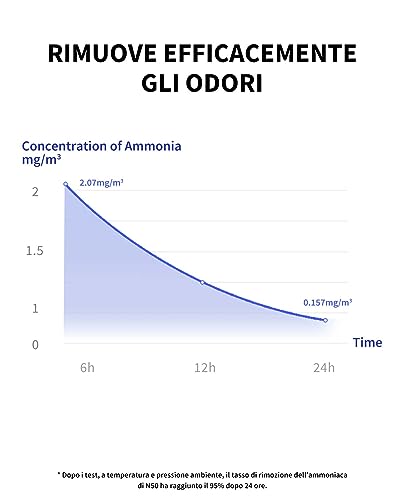 [Deodorante a Lunga Durata] Il deodorante per odori N50 rompe gli odori nei contenitori dei rifiuti in ogni momento mentre diffonde la fragranza per lungo tempo. Si blocca continuamente e scompone le sostanze che producono odori come l'ammoniaca e l'idrogeno solforato nelle feci di gatto, impedendo la diffusione degli odori.