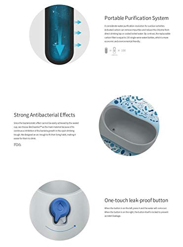 Una risoluzione rispettosa dell'ambiente per la depurazione dell'acqua, ideale per le attività all'aperto. Il carbone attivo rimuove le impurità e riduce il cloro dell'acqua del rubinetto e dell'acqua bollita.