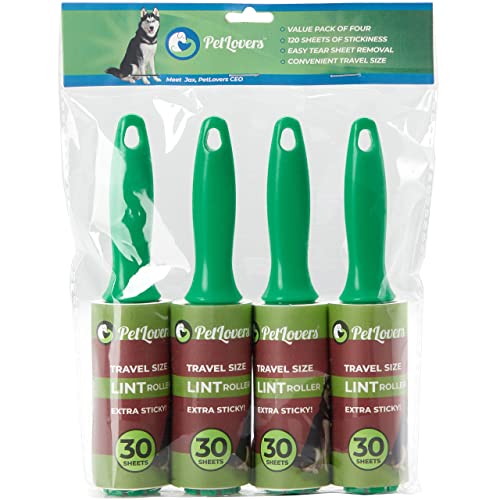 PetLovers Mini Rulli per pelucchi extra adesivi, confezione da 4, dimensioni da viaggio