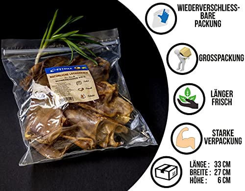 Petmex, orecchie di maiale per cani, 430 g, 10 pezzi, giocattolo naturale per cani, soddisfa le esigenze di masticazione e supporta la pulizia dei denti, diverse varietà e dimensioni