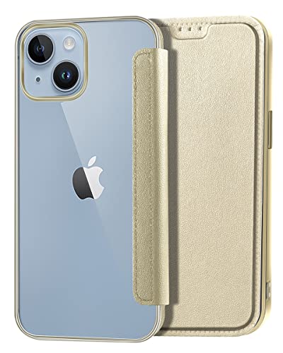 Petocase Compatibile con iPhone 14 Custodia telefonica Flip, Custodia Folio sottile in pelle con copertura posteriore trasparente Completamente protettiva con portacarte oro