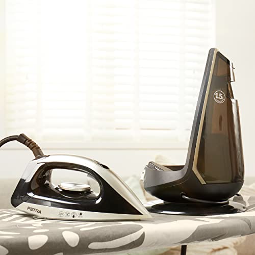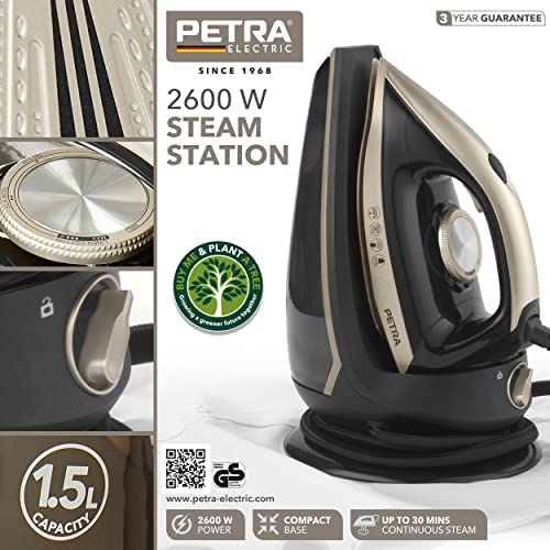Petra PF01483VDEEU7 Ferro da Stiro a Vapore Con Caldaia Da 2600w, Base Compatta, Vano Portacavo da 1,9 M, Serbatoio Acqua Rimovibile da 1,5 L Con Blocco, 30 Min di Vapore Continuo, Anticalcare