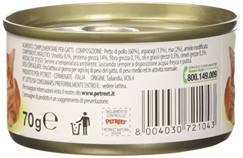 PETREET Sfilaccetti di Pollo con Asparagi - Confez. da 48 Pezzi x 70 gr