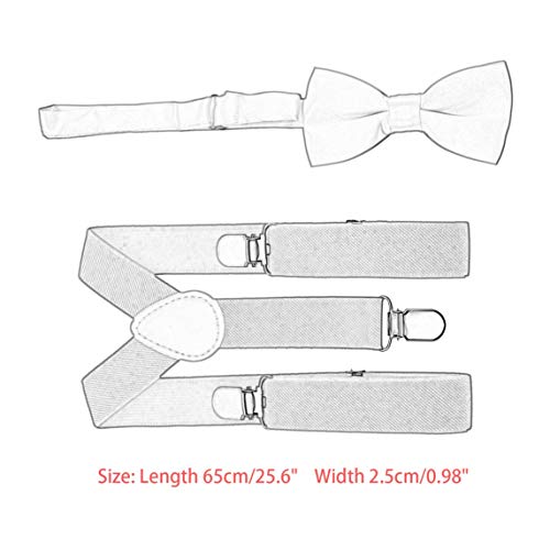 Petrichori Regolabile ed Elasticizzato con Clip in Metallo Poliestere Design per Bambini Bretelle e Papillon Set di Papillon Cravatte abbinate Completi - Papillon Giallo Oro