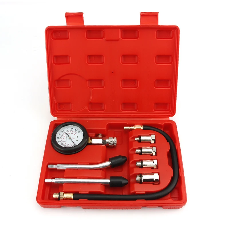 Petrol Gas Engine Cylinder Compressor Gauge Meter Test Pressure Compression Tester Leakage Diagnostic Tool with Longer Adapter