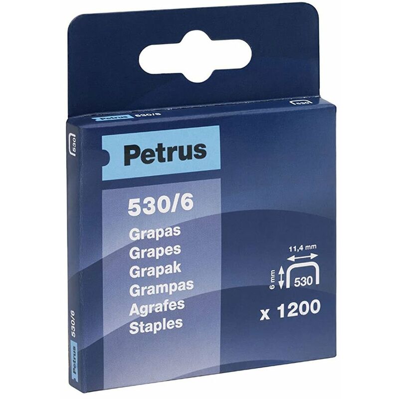 Scatola 1200 punti mod. 530/6mm 77513 petro. Graffette in rame da 530/6 mm in una scatola da 1.200 graffette. Tipo: Graffette Marca: Petrus Contenuto: 1200 pezzi Riferimento: 77513 Modello: 530/6mm Materiale: Filo di rame di alta qualità Colore: Rame Misura: 11 4x6mm EAN: 8411772775133 Produttore: PETRUS Marchio: PETRUS Paese d'origine: ES Peso (kg): 0,083 Riferimento: 19843