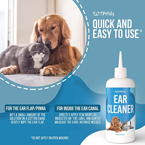 Petsly Pulizia Orecchie Cane e Gatto con Aloe Vera - Pulizia Orecchie Gatto e Cane per Orecchie Sensibili - Detergente Orecchie Cane Che Previene Prurito Cane - Pulisci Orecchie Cane e Gatto, 250ml