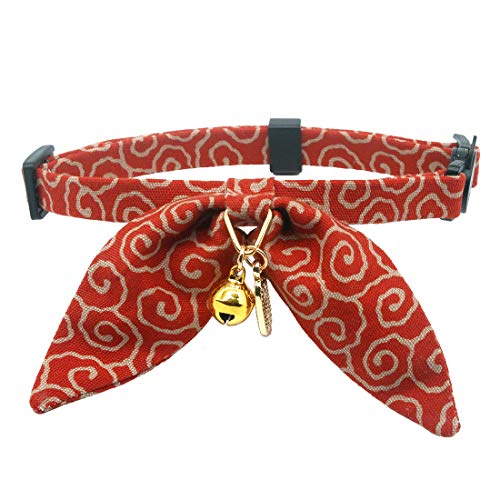 PetSoKoo - Collare per gatti con orecchie da coniglio, con stampa arabesca antica e ciondolo portafortuna tradizionale giapponese, con apertura di sicurezza, leggero, morbido, durevole