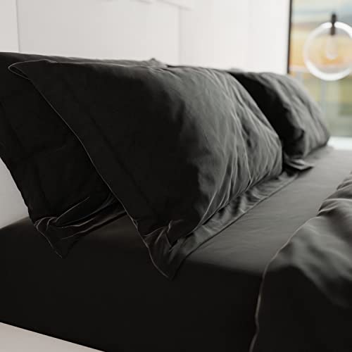 PETTI Artigiani Italiani - Coppia Federe Cuscini Letto, Federe Copricuscini Tinta Unita Nero, 100% Microfibra Anallergica, 100% Made in Italy