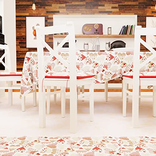 PETTI Artigiani Italiani - Tovaglia, Tovaglia da Tavola, Tovaglia Cucina in Cotone Disegno Cuori Rosso X6 Posti (140x180 cm) 100% Made in Italy