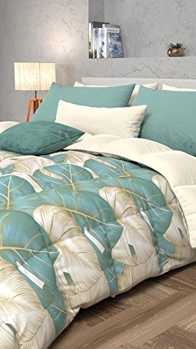 PETTI Artigiani Italiani - Trapunta Matrimoniale Invernale, Piumone Matrimoniale, Trapunta Double Face Tinta Unita e Stampa Digitale Tropical Celeste O, Made in Italy