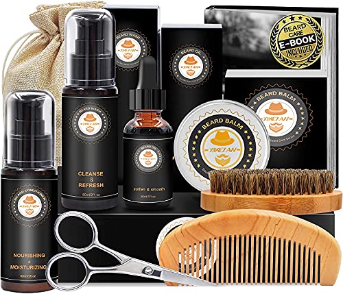 REGALO PERFETTO - Questo kit per la barba è confezionato in una lussuosa confezione regalo di lusso. È un ottimo regalo per un amico barbuto, marito, padre che potrebbe usare alcuni prodotti per la cura della barba per domare barba e baffi. Se hai qualche domanda, ti sarà fornito un servizio soddisfacente del 100%.