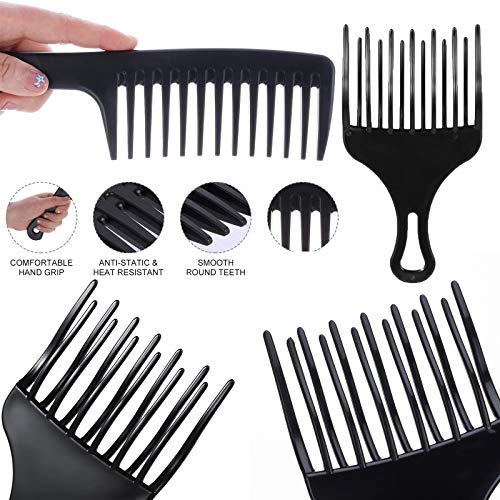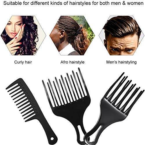 Pettine da barbiere in plastica per capelli ricci e pettinini, 3 pezzi, colore: nero, a denti larghi