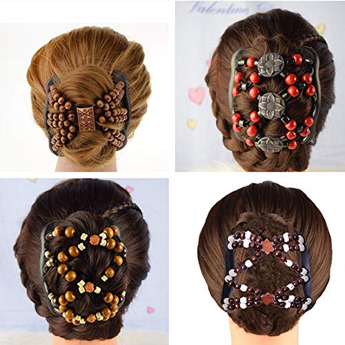 Contenuto della confezione: 6 pettini elastici doppi: ogni magico pettine elastico trecce perline di legno con corde elastiche, elastico e durevole.