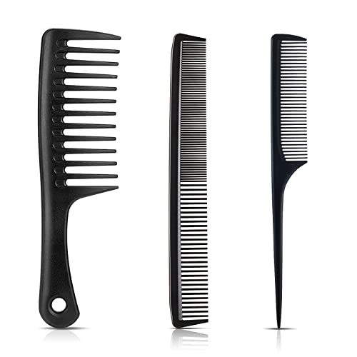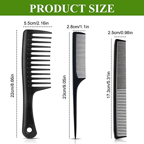 Pettine nero capelli Set: Questi pettine di plastica sono progettati con 3 stili e dimensioni differenti, il pettine a denti larghi è circa 8.66 * 2.17in / 22 * 5.5cm, il pettine di sezionamento è circa 6.81 * 0.98in / 17.3 * 2.5cm, il pettine della coda del ratto è circa 9.06 * 1.1in / 23 * 2.8cm.