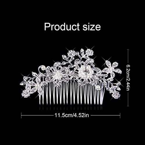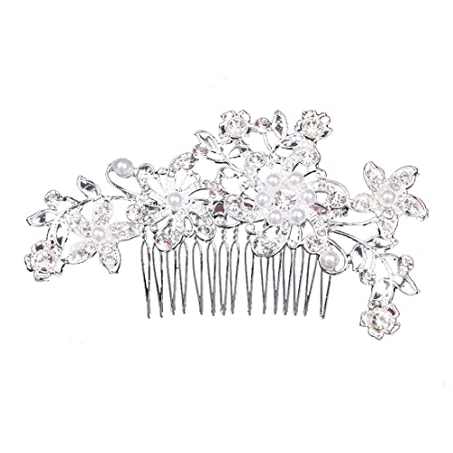 Pettine per Capelli Sposa in Cristallo, Fiore accessori per capelli da sposa argento perla, Fermaglio per Capelli in Argento Con Cristalli,Accessorio per Capelli da Sposa per Donne e Ragazze