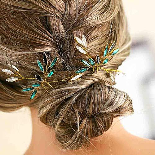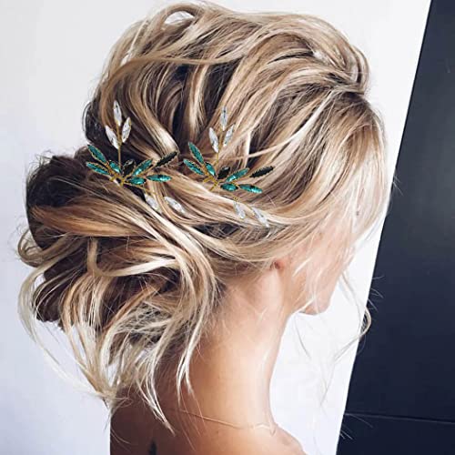 IYOU - Pettine per capelli da sposa con fiori verdi e cristalli, accessorio per ragazze e donne (2 pezzi)
