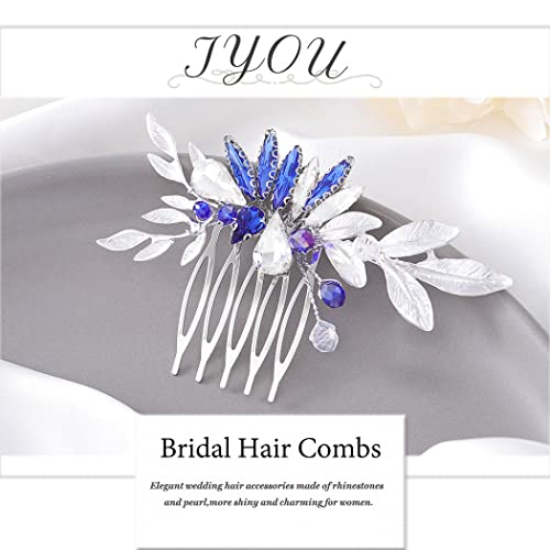 IYOU Pettine per capelli da sposa con strass, colore blu, ideale per matrimoni e balli studenteschi, accessori per capelli da donna