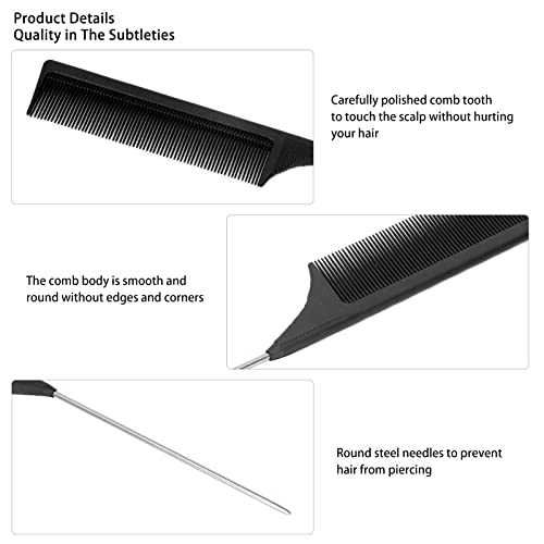 Pettine a Coda con Codone in Acciaio, Pettine Professionale per Sezionare, Cotonare e Acconciare Intricati(Nero)