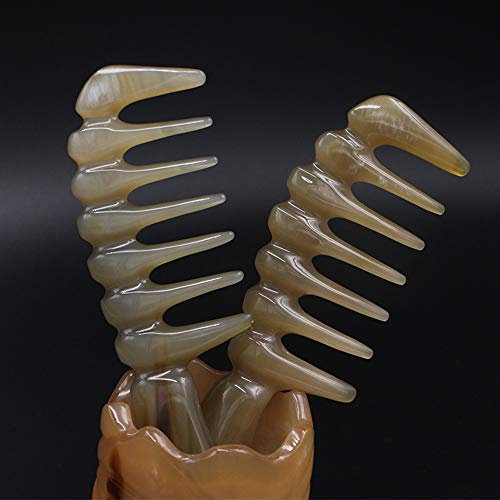Pettine in legno a denti larghi Pettine Di Corno Di Yak Naturale Pettine A Denti Grandi, Pettine For Massaggio Della Testa Del Meridiano (Size: Large)