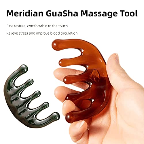 2 pz Pettine per massaggio meridiano Portatile Guasha Cuoio Capelluto Pettine Comodo Palmare Gua Sha Raschiare Massaggio per la Cura della Testa Rilassamento Terapia Fisica Trattamento Acupoint