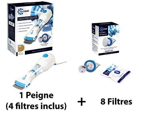 Pettine per pidocchi V-comb + scatola di 8 filtri