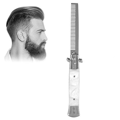 Pettine Pieghevole Tascabile Pulsante Pieghevole Automatico Pettini Acciaio Inossidabile per Capelli per Barba Baffi Accessori per lo Styling dei Uomo Capelli Olio (Bianca)