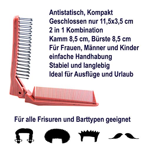 Compatto: grazie alla funzione pieghevole, il pettine è compatto, facile da riporre e da maneggiare. Piegato, il doppio pettine ha una dimensione ideale di 11,5 x 3,5 x 1,5 cm e si adatta quindi a qualsiasi pantalone, giacca, cosmetici o borsa. Un compagno ideale e fedele