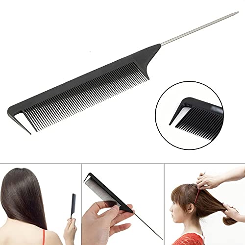 Pettine professionale per parrucchiere, 3 pezzi, antistatico e resistente al calore, con manico in acciaio inossidabile, pettine a denti fini per donna (nero)