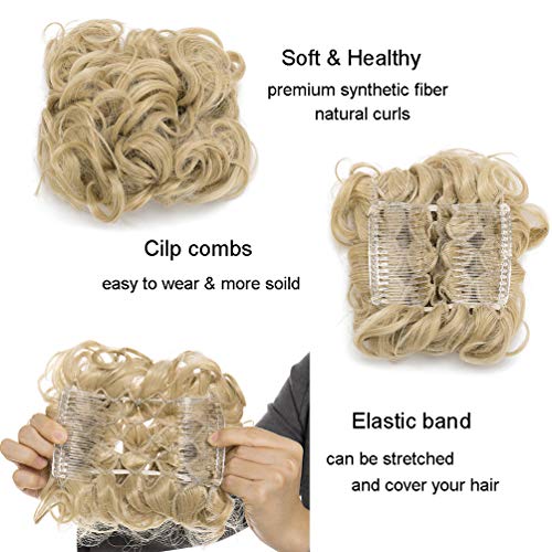 Clip Pettine in Ricci Bun Estensione dei Capelli Chignon Updo Pezzo di Capelli Corti Ondulati Scrunchie Posticci Coda di Cavallo Hair Extension Evidenziazione bionda marrone