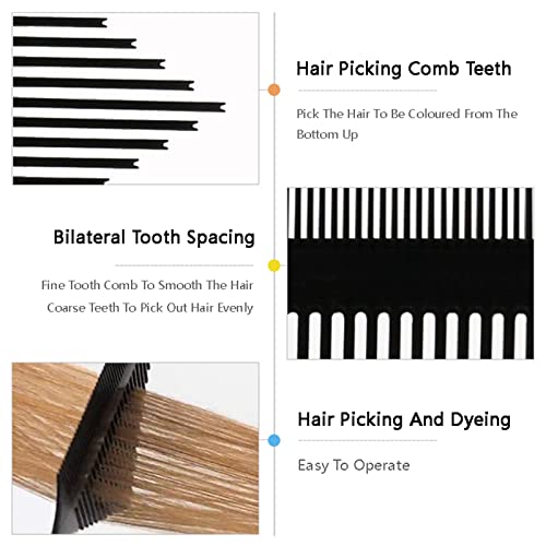 La parte del pettine per evidenziare ha una forchetta che può essere prelevata e poi tinta separatamente, la coda appuntita può essere utilizzata per raccogliere la sezione dei capelli e il lato del dente piatto può essere tinto.