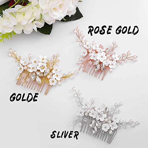 IYOU - Pettinino da sposa, principesco, con fiorellini, brillantini e perline, accessori per capelli, per ragazze e donne