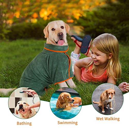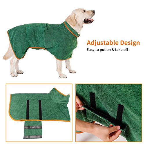 PETTOM Accappatoio per Cani Microfibra, Abbigliamento Asciugamano Morbida per Animali, Accappatoio da Asciugatura Rapida Regolabile Piccolo Medio Grande Taglia (Verde, XL)