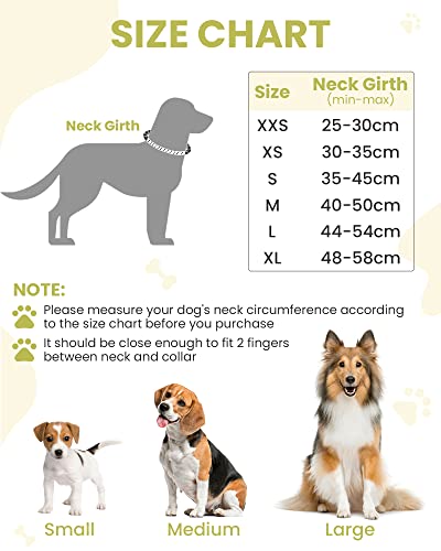 【Nota】Si prega di misurare la taglia del vostro animale domestico prima dell'acquisto e scegliere secondo le informazioni sulla taglia nella foto. Se il vostro animale domestico è vicino alla taglia massima, si prega di scegliere una taglia più grande. XS:1,5cm larghezza x29,5-35cm circonferenza collo,S:2cm larghezza x36-46cm circonferenza collo,M:2cm larghezza x40,5-50,5cm circonferenza collo,L:2cm larghezza x44,5-53cm circonferenza collo,XL:2,5cm larghezza x49-57cm circonferenza collo