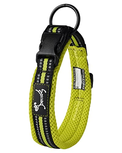 PETTOM Collare Cane Cani Cuccioli Piccola Taglia Media Grande con Targhetta Nome Riflettente Morbido Regolabile Imbottito Sicurezza Nylon Morbido Resistente Traspirante (Verde XL)