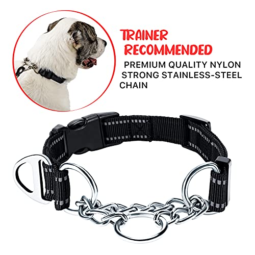 PETTOM Collare Semistrozzo Cane, Collare Cane Con Serratura di Sicurezza, Regolabile e Riflettente, Collare a Strozzo per Cani di Piccola, Media e Grande Taglia (S, Nero)