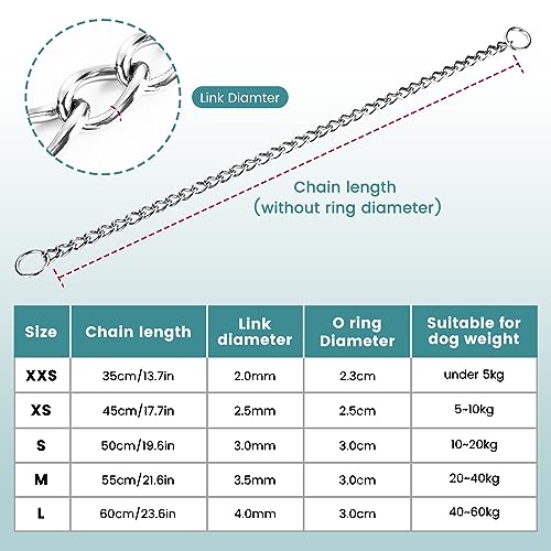 【DIVERSE DIMENSIONI】- Offriamo 4 taglie di collari per cani in acciaio inossidabile per adattarsi alla maggior parte dei cani. Misura il collo del tuo cane usando un metro a nastro. Il collare dovrebbe essere più lungo di 2-3 centimetri rispetto alla misura.