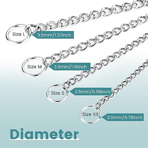 PETTOM Collare Strozzo Cane Acciaio Inox, Collari per Cani Regolabile Resistente, Collare Catena Cane Taglia Grande, Media e Piccola