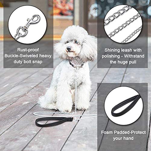 Nota: realizzato in robusto metallo, placcatura a 2 strati, non facile da arrugginire. Ma per mantenere la durata del prodotto, si prega di riporlo nel luogo asciutto. guinzaglio in metallo (acciaio cromato) è naturalmente più pesante del guinzaglio in nylon, si prega di fare attenzione al peso di questo guinzaglio prima di acquistare