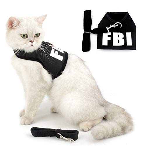 SMALLLEE_LUCKY_STORE FBI - Pettorina per gatti e guinzagli a prova di camminata, regolabile, senza tiro, per cuccioli, gattino, coniglio, cane, taglia L, colore: nero