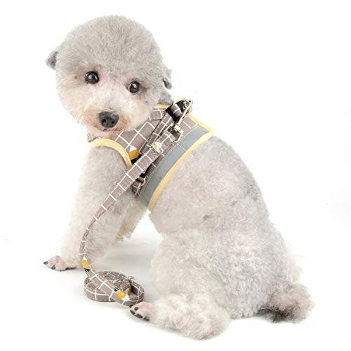 Set di pettorina e guinzaglio per cani di piccola razza e gatto, reflctive No pull morbido maglia cucciolo giacca,anelli a D, regolabile per passeggiate escursionismo all'aperto, cachi XS