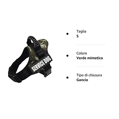 Pettorina Cane Taglia Regolabile, Traspirante, Comodo No-Pull Pettorina per Cani con Gancio in Metallo per Cani di Taglia Piccola, Media e Grande (S, Verde mimetico)