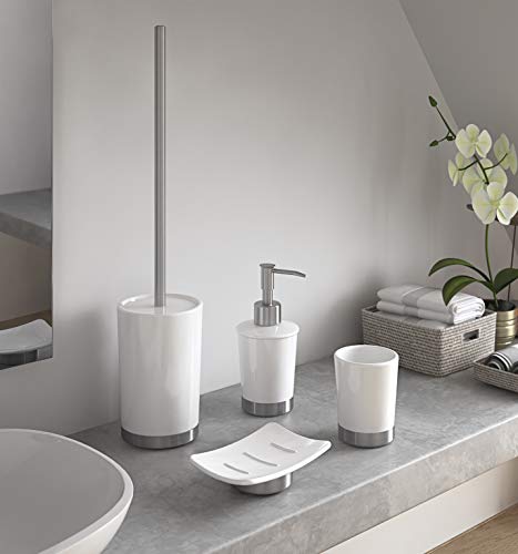 Gedy Petunia scopino wc, Ceramica/Acciaio Inox, Bianco, 9 x 9 x 44,8