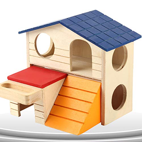 Petyoung Accessori per Gabbie per Nascondigli per Piccoli Animali da Compagnia Casa per Criceti Deluxe Capanna in Legno a Due Strati Gioca con Giocattoli per Topi di Piccoli Animali