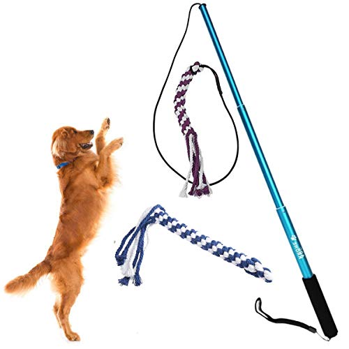 Petyoung Interactive Tug Toy, Estensibile Teaser Outdoor Wand con 2 Corda in Cotone Chew Tail Toy per Divertimento Obbedienza Training & Exercise (Color: Blu, Size: S)