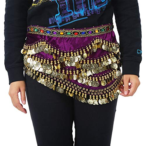 Petyoung - Sciarpa da donna, con gonna a fascia, con paillettes artificiali, per danza del ventre, da donna Viola scuro M