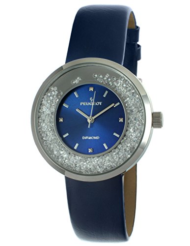 Peugeot 3041SBK - Orologio da donna rotondo in argento sottile e genuino, con zirconia cubica